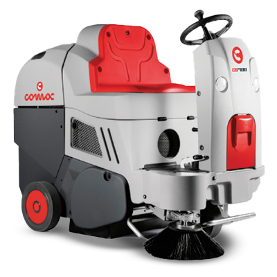 CS700 and CS800 is a range of ride-on sweepers devised to offer maximum user-friendliness and great comfort for the operator. Extremely robust and reliable, CS700 and CS800 were designed to offer great productivity and effective, affordable cleaning. CS700 and CS800 are available battery-powered or with gasoline engine, and with two different working widths to meet all cleaning requirements. Extremely effective also in the presence of coarse dirt, the sweepers are suitable for cleaning indoor and outdoor areas in industrial environments, warehouses, shopping areas, car parks and in the public, automotive and transport sectors